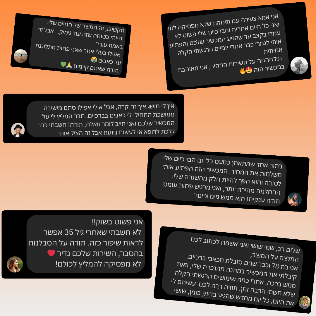 משתפים שהמכשיר מפחית עבורם את העומס והתחושה של “כבדות” או נוקשות באזור הברך